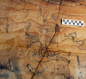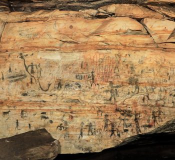 Understood to be an ancient hallowed site for sacred rituals, astronomical studies, oral tradition, vision quests, and described as “the most important rock art site in North America”. The two cave system boasts massive panels of over 290 prehistoric glyphs making it the largest collection of indigenous people’s polychrome paintings in Missouri. Considered to be one the most significant North American archeological sites, Picture Cave’s importance has been described by scholars as rivaling that of Cahokia and Chaco Canyon. The quantity and complexity of the wall images, like the renowned depiction of Red Horn, are unmatched compared to other prehistoric sites. For an extensive library of images and additional information related to Picture Cave, see the work of Professor Michael Fuller and the photography of Alan Cressler.